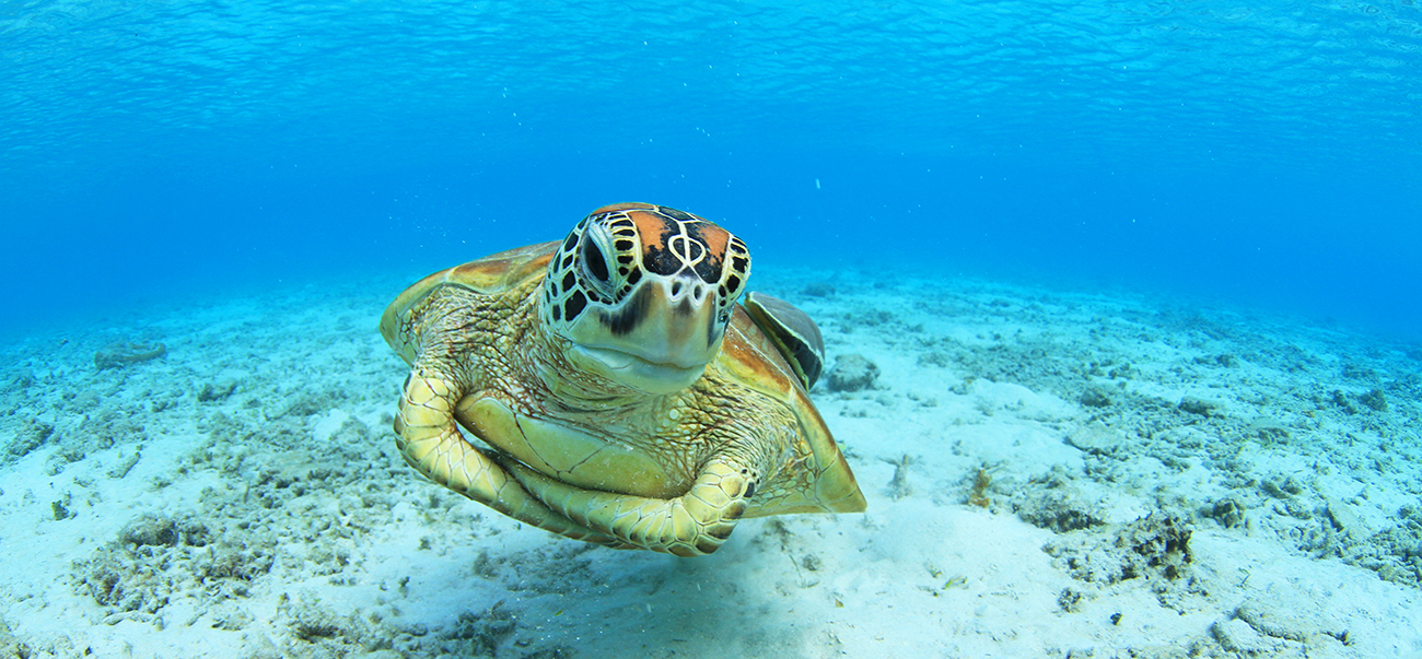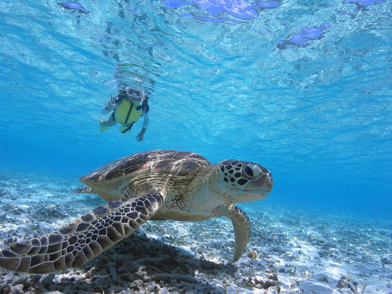 野生のウミガメが自然のままに海草を食べに集う阿真ビーチ。